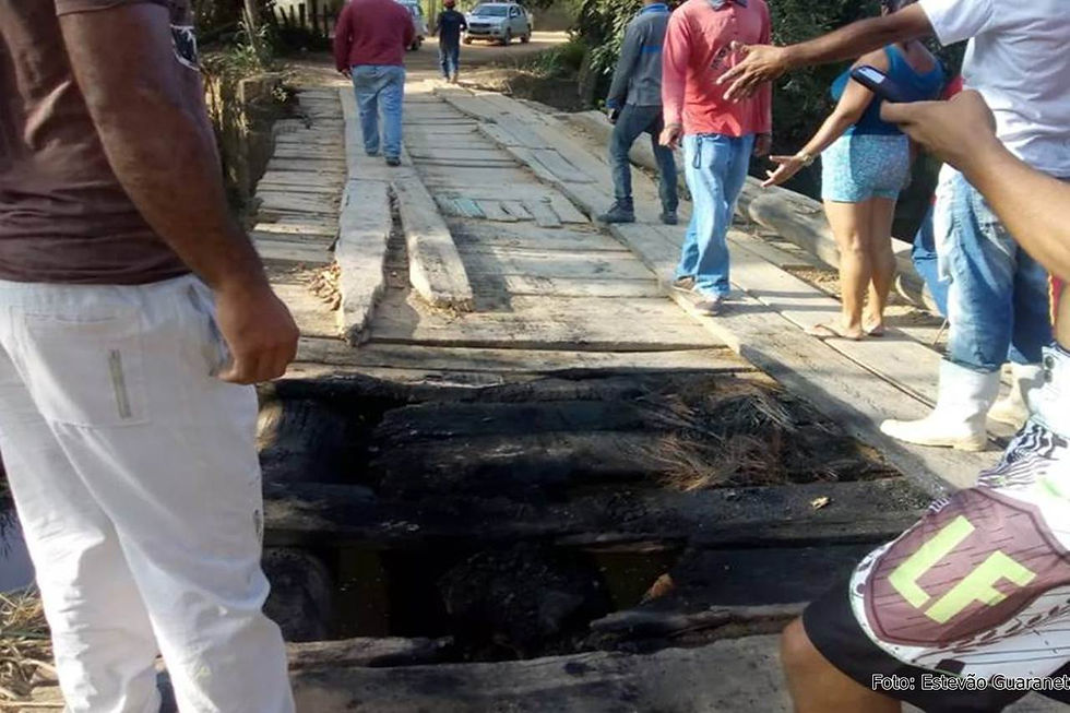 Guaratinga: Parte de ponte de madeira é incendiada.